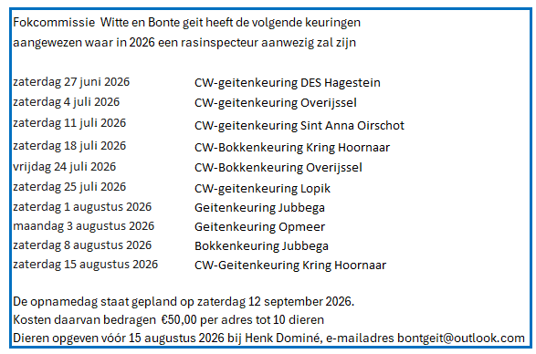 Aanmeldformulieren kunnen tot 3 juli aangevraagd en in geleverd worden via het emailadres geitenkeuringdefriesewouden@gmail.com. Meer informatie volgt.